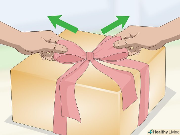 Подарунок вже упакований, і ви готові його подарувати. Все що залишилося-зав'язати красивий бантик. Завжди можна купити в магазині готовий бант на липучці, однак якщо докласти ще трохи зусиль і обв'язати коробку стрічкою, то подарунок буде виглядати витонченіше. Зав'язати бант на коробці — легко. Коли ви освоїте найпростіший бант, можете спробувати більш незвичайні способи: обв'язку стрічкою по діагоналі або переплетені стрічки.