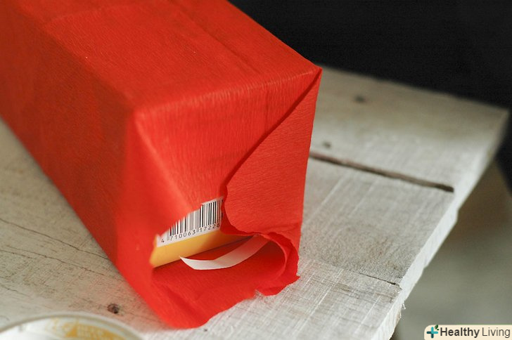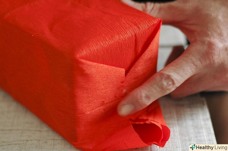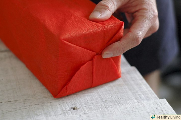 Відміряйте обгортковий папір - для початку ретельно запакуйте річ, якщо вона тендітна, всередині коробки і переверніть коробку. відміряйте досить довгий шматок паперу, щоб обернути коробку по колу. Залиште трохи запасу, щоб акуратно скласти упаковку по краях.