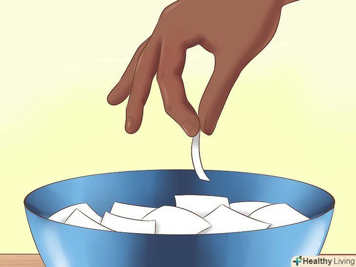 Запишіть послідовно цифри на шматочках паперу. зробіть стільки ж номерків, скільки учасників обміну. Наприклад, якщо учасників 15, приготуйте маленькі шматочки паперу з цифрами від 1 до 15, складіть їх в один або два рази, і киньте в невелику миску або мішечок.