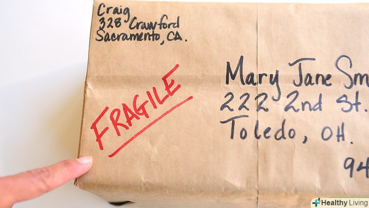 Закрийте коробку надійно стрічкою. не перестарайтеся зі стрічкою, використовуйте її стільки, скільки буде достатньо для надійного кріплення упаковки і не призведе до її відкриття, якщо водій-експедитор проїдеться по купинах. Повинна бути передбачена можливість легкого її стиснення (злегка) при цьому всередині не повинно нічого стикатися. Буде корисно написати на коробці чорним маркером. "Поводитися з обережністю".