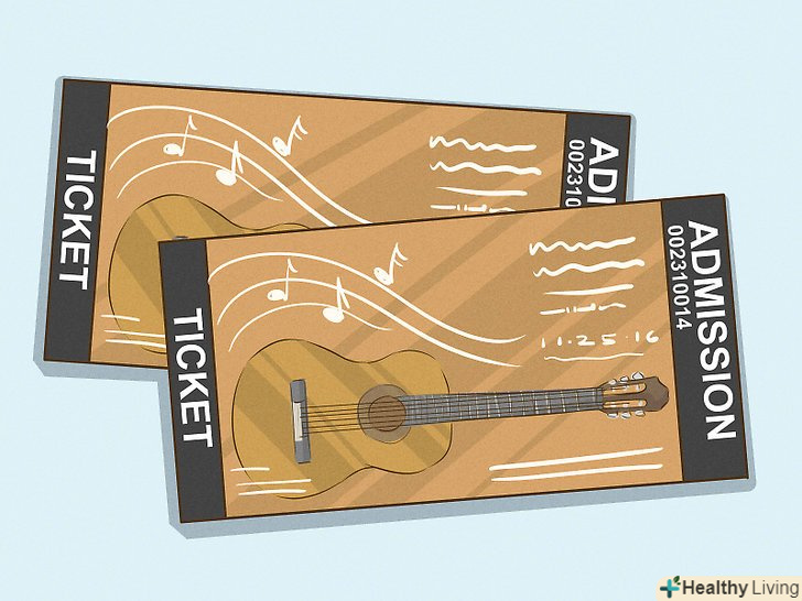 Якщо ви любите музику або театр, попросіть квиток на виставу. часом спогади про якусь подію здатні пережити будь-які матеріальні подарунки. У багатьох театрах також продають супутні матеріали до вистав, наприклад, постери, CD-диски, футболки, які можна придбати собі на довгу пам'ять.- Якщо десь неподалік відбудеться концерт вашої улюбленої групи, попросіть подарувати вам квиток на концерт. Можна навіть попросити більш специфічний подарунок-VIP-перепустку, щоб ви могли пройти за лаштунки, особисто зустрітися з музикантами і взяти у них автограф.