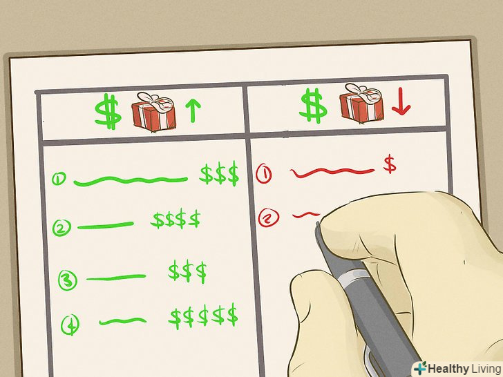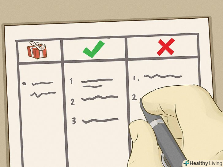 Перерахуйте всі плюси і мінуси кожного подарунка. якщо ви не можете зробити остаточний вибір з декількох ідей, складіть список всіх за і проти. Просто перерахуйте всі плюси і мінуси отримання кожного з таких подарунків. Виберіть собі той подарунок, у якого виявиться більше плюсів і менше мінусів. Наприклад, отримати в подарунок куртку не настільки радісно, але її можна різним чином поєднувати з вашим гардеробом, крім того, вона не дасть вам мерзнути взимку.