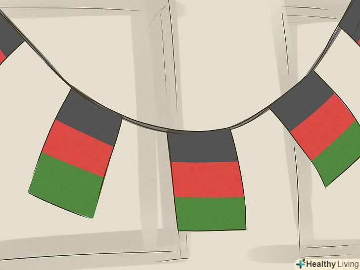 Прикрасьте кімнату прапорами Кванза (Bendera) і постерами зображують, сім головних принципів. ви можете купити їх або зробити самі. Особливо весело робити їх з дітьми.- Прочитайте статтю «Як робити прапор» для докладного опису. Натиснути тут для подальших інструкцій про те, як розфарбувати прапор.