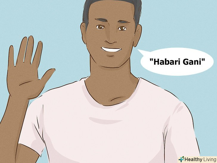 Використовуйте привітання Кванза. починаючи 26 грудня, Вітайте один одного словами "Habari Gani" , які є звичайним привітанням на мові суахілі і означає " Що нового?». Якщо хтось вітає вас такими словами, дайте відповідь відповідною фразою:- 26 грудня: " Umoja " - єдність