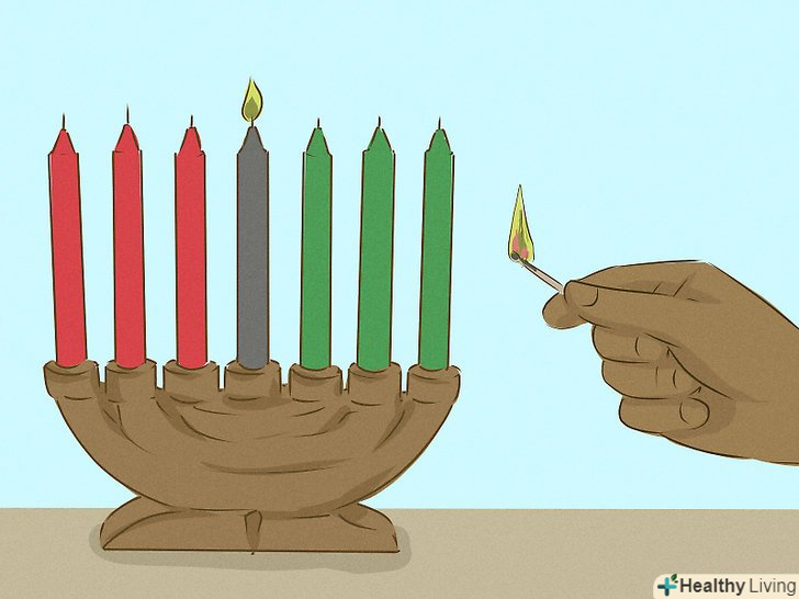 Щодня запалюйте Кіпага. Так як кожна свічка відповідає певному принципу, їх потрібно запалювати одну в день у відповідному порядку. Чорну свічку завжди запалюють першої. Деякі люди запалюють інші свічки зліва направо (від червоних до зелених), в той час як інші запалюють в наступній послідовності:- Чорна свічка