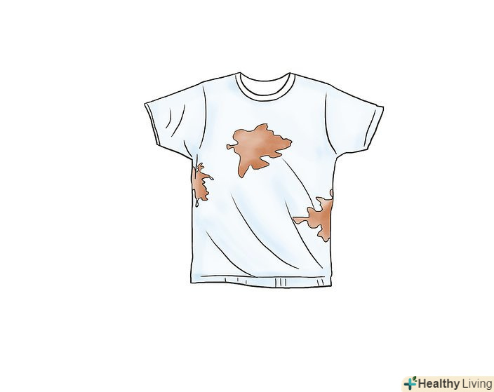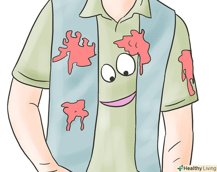 Знайдіть вільну білу футболку і зробіть на ній кілька плям від шоколаду і соку. довжина футболки повинна доходити до стегон.