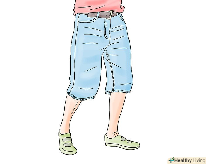 Одягніть джинсові шорти, які будуть вільно на вас сидіти. їх довжина повинна доходити до колін. Якщо ви хочете виглядати так, немов тільки що грали у дворі, можете прорвати одне коліно на них.