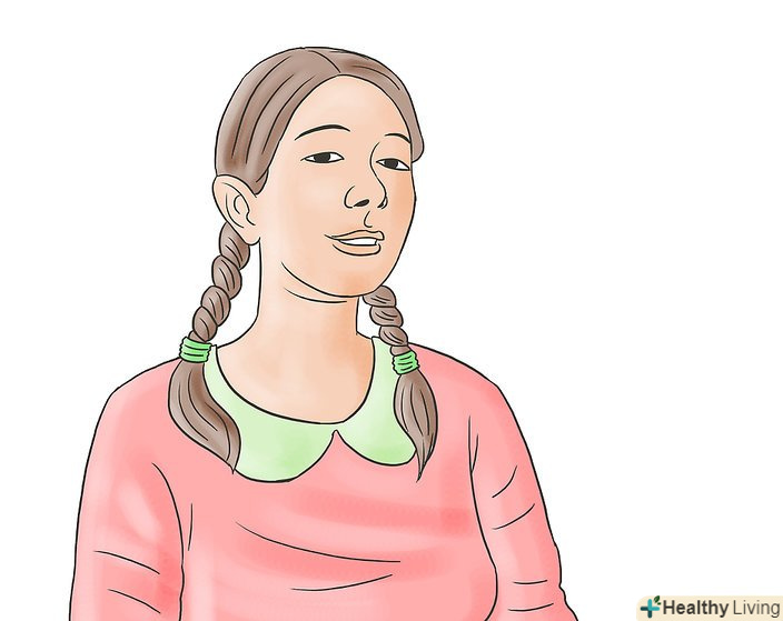 Заплетіть своє волосся в безліч дрібних кісок або в дві коси. Хвостики теж підійдуть, але вони будуть виглядати на настільки по-дитячому, як косички.