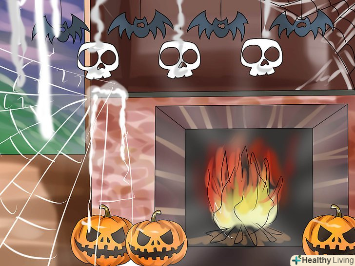 - Для кімнат використовуйте павутину в кутах і димову машину. Розвісьте павуків і кажанів в темних кутках кімнат, а також придбайте кілька пляшок зі світиться в темряві рідиною.