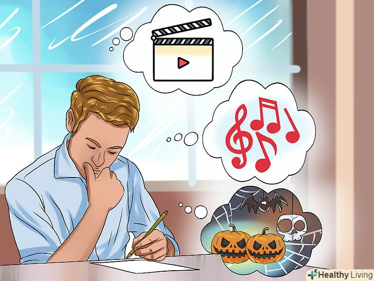 Сплануйте ігри на Хеллоуїн. тут потрібно враховувати кількість гостей, вік і їх інтереси. Пошукайте в Інтернеті різні ідеї для ігор.- Костюмовані вечірки завжди улюблені гостями. Ви навіть можете обмежитися однією темою-всі гості повинні одягнутися як персонажі з фільмів жахів, одного конкретного фільму (може, весь ваш будинок буде прикрашений в цій темі?) або як мерці.