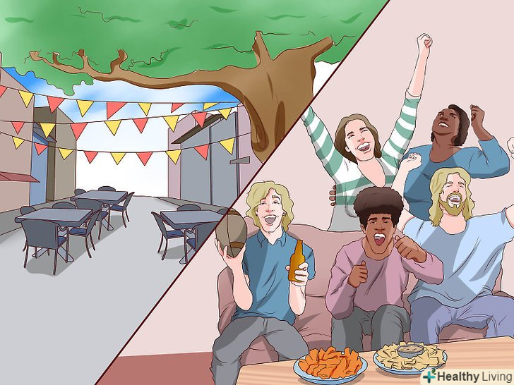 Запросіть друзів на конкретну подію. Одним з варіантів організації чудової вечірки може стати певна подія, на якому зосереджені всі її учасники. Запросіть друзів на спільний перегляд телевізійної передачі або влаштуйте вечірку з нагоди чийогось дня народження. Набагато простіше продумати тематику, коли ви влаштовуєте присвячену певній події домашню вечірку. [1]- Влаштуйте вечірку під кодовою назвою "Суперкубок", на якій ви зможете подивитися матч за Суперкубок цього року. Стилізуйте декорації та їжу у футбольній тематиці або кольорах тих команд, які беруть участь у Суперкубку.