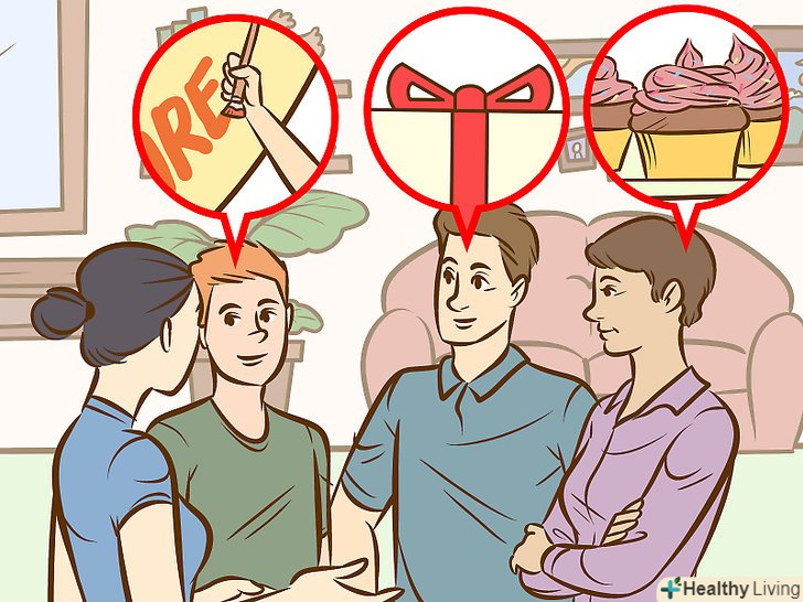 Розподіліть зони відповідальності між людьми. вам буде складно все зробити самостійно, але, швидше за все, вам не доведеться робити все поодинці. Напевно інші люди будуть готові допомогти вам.- Розподіліть завдання між людьми, щоб вам було простіше все зробити вчасно. Нехай хтось відповідає за покупку прикрас, хтось-за їжу. Можливо, у вас є винахідливий друг, який з радістю погодиться зробити пам'ятний альбом або подарунок.