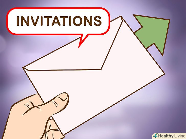 Надішліть запрошення. запросіть людей заздалегідь, щоб вони могли продумати свої плани. Подумайте, кого людина, якій ви влаштовуєте вечірку, захоче побачити. Спочатку запросіть близьких друзів і родичів. Продумайте бюджет. Якщо ви обмежені в засобах або якщо ви знаєте, що людина не захоче велику вечірку, запросіть невелику кількість людей. Можна навіть розіслати персоналізовані запрошення. [2]- Паперові запрошення будуть красивим жестом. Оформіть запрошення відповідно до теми вечірки.