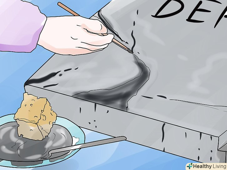 Розфарбуйте могильну плиту. найефективнішою для цього процесу є водоемульсійна фарба. Почніть з фарби темного тону і робіть «промакивающие» руху по всі області надгробка. Прокрасьте тріщини більш темним кольором. [6]