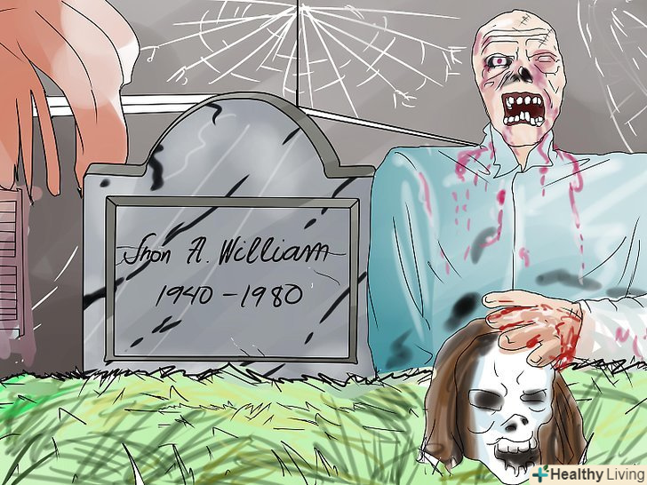 Помістіть надгробки на вашому газоні. для того щоб зробити вигляд ще страшніше, поставте поруч саморобного примари або ж покрийте могильну плиту бутафорною павутиною.