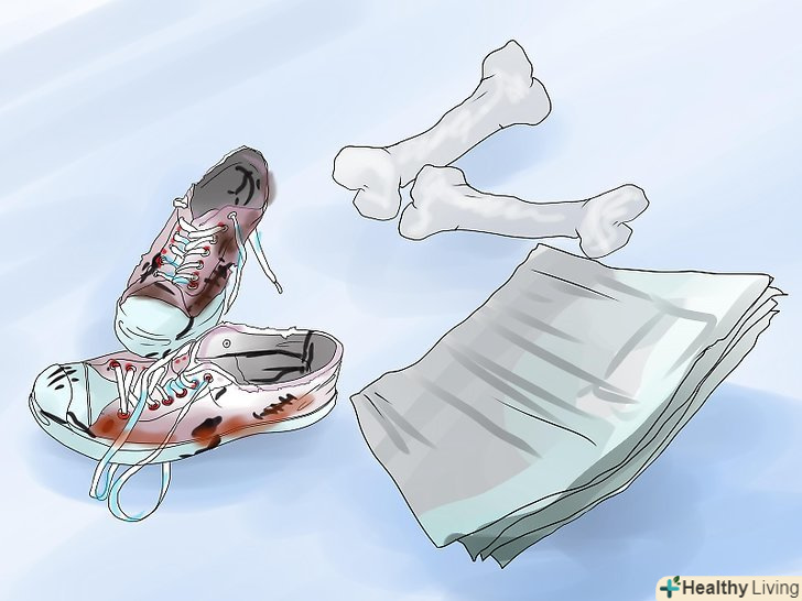 Підготуйте всі потрібні матеріали. вам знадобиться: пара старих черевиків, старі газети, дві саморобні кістки (для їх виробництва дотримуйтесь інструкції, розташованої вище) клейка стрічка або скотч і червона фарба.