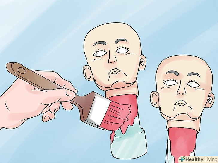 Фарбуйте нижню частину голови або шию (якщо є) ляльки червоною фарбою. це додасть ляльці кривавий і страшний вигляд. Дайте фарбі висохнути.- Купуйте велику скляну або пластмасову вазу або резервуар. переконайтеся в тому, що придбана вами річ досить велика для розміщення всіх лялькових голів, які ви виготовили раніше. Ваза може мати будь-яку форму, але найбільш типовими є прямокутна і кругла форми.