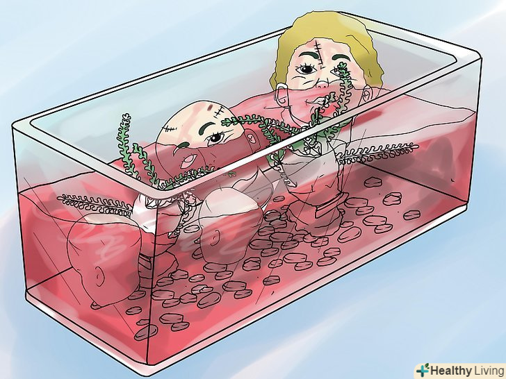 Покладіть лялькові голови у воду. нехай вони опустяться на дно або ж плавають на поверхні. Відрегулюйте їх розташування, щоб домогтися більш моторошного ефекту. Переконайтеся в тому, що акваріум буде висвітлюватися настільки добре, що їм зможуть помилуватися всі сусіди.- Якщо ви використовуєте акваріум з ляльковими головами в якості домашнього прикраси, зробіть його центральною частиною столу і поставте поруч миску з цукерками.