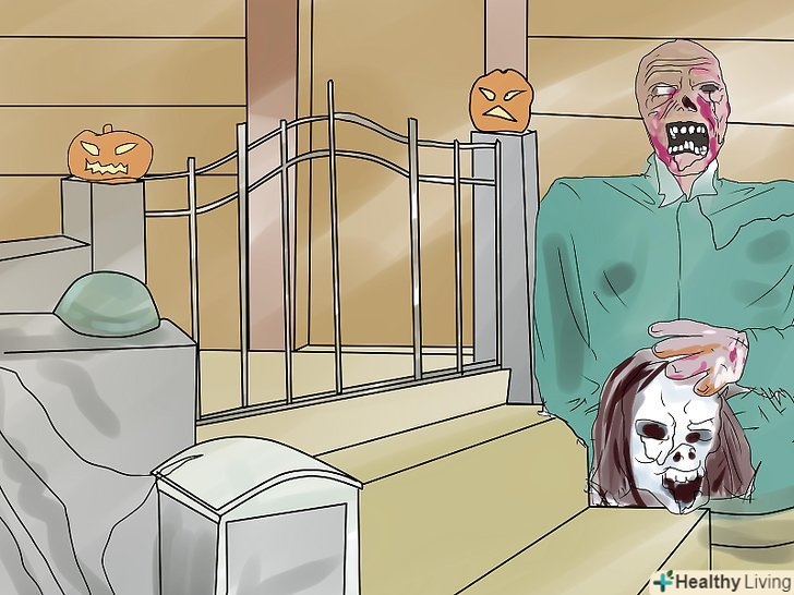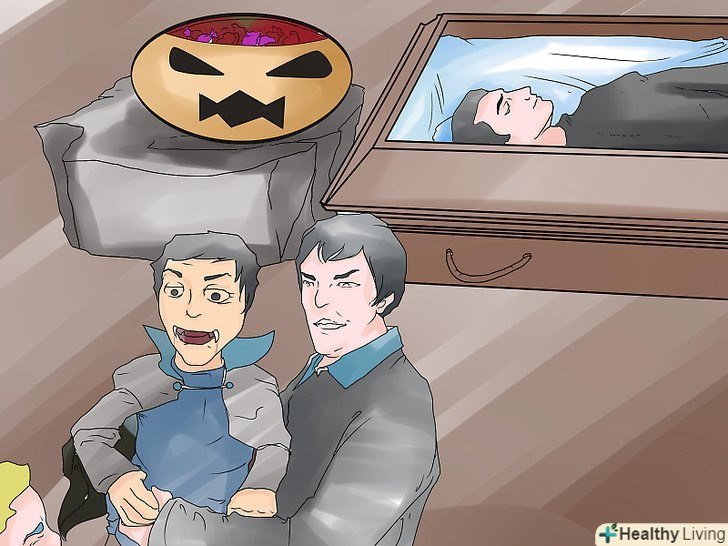 Налякайте дітей манекеном, одягненим як вампір, зомбі або мертвяк. помістіть його в труну або залиште висячим з дерева поруч з мискою цукерок.
