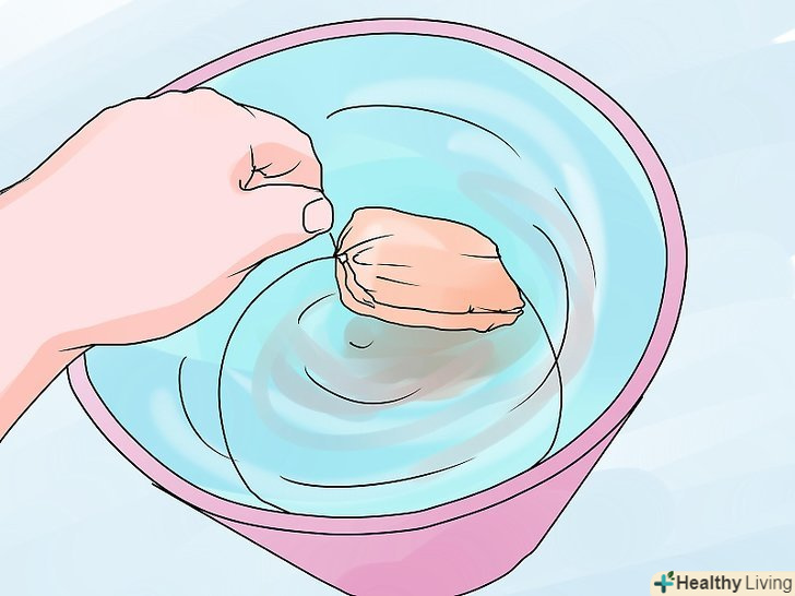 Опустіть 1 шматок гіпсової тканини в миску з чаєм. гіпсова тканина – твердий матеріал, який будучи зволоженим, обертається навколо поверхні (наприклад, паперових кісток). Занурте гіпсову тканину в чай, щоб надати їй жовто-сірий відтінок, який додасть кісткам пару десятків років.