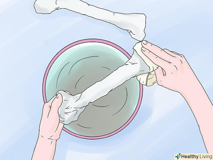 Вийміть гіпсову тканину з чаю. вичавите чай, пропустивши тканину між вашими середнім і вказівним пальцями. Паперова кістка може втратити свою форму, якщо шматок тканини яку ви завдасте, буде занадто вологим.