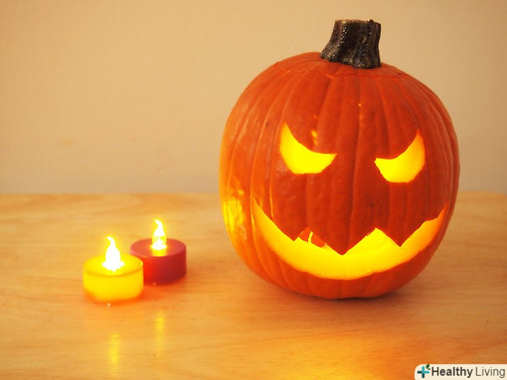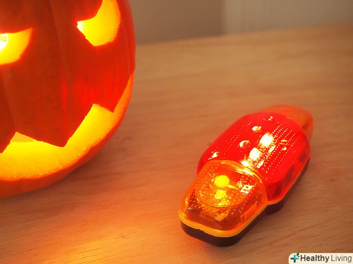 Використовуйте в якості свічки лампочки на батарейках. Якщо вас турбує безпека і свічка може викликати пожежу, наприклад, через дітей, що бігають по будинку, або тварини можуть зачепити вашу гарбуз, використовуйте альтернативне джерело світла-лампочки на батарейках. Вони зручні у використанні, безпечні і не дорого коштують. З такими лампочками вам не доведеться турбуватися про безпеку.- Існує кілька видів таких лампочок. Деякі світять стандартним світлом, деякі червоним, синім, зеленим... Колір може надати додатковий антураж вашої гарбузі.