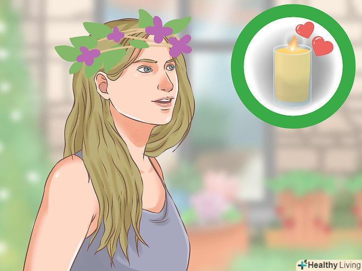 Не забувайте про значущість конкретних речей, таких як вогонь і квіти. вогонь уособлює любов і пристрасть, так що запаліть свічки. У квітах же міститься пилок для запліднення рослин, так що багатьом вікканам подобається вплітати в волосся квіти, носити вінки з квіти, використовувати їх в рецептах або в якості прикрас.