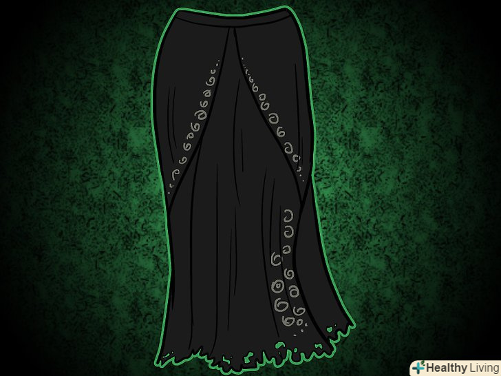 Зшийте або купіть довгу чорну спідницю. одноколірна спідниця підійде до цього найкраще. Візьміть Срібний маркер і намалюйте візерункові завитки по краях. Якщо складок немає, зробіть їх самі на бічній стороні спідниці.