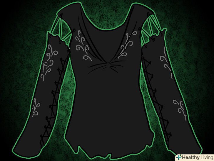 Купуйте сорочку з довгими рукавами. відріжте рукава, потім пришийте їх заново стрічкою або шкіряною мотузкою, так рукава будуть на пару сантиметрів далі отворів для рук. Відріжте манжети, щоб вони не протиралися. Нашийте мережива до манжет, якщо хочете. Якщо цього не достатньо, зробіть V-подібний виріз. Потім, протягніть голку по краях вирізу і трохи проведіть нитку, щоб утворилися складки. Зробіть так само навколо вирізу, щоб підтримати форму. Прикрасьте за бажанням.