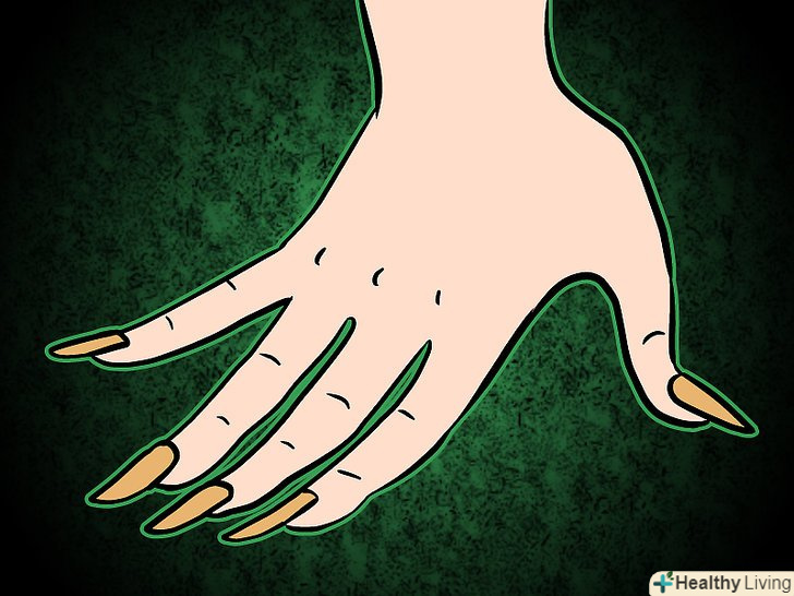 Купіть накладні нігті, приклейте їх (не фактично, залиште їх закругленими до верхівки). нафарбуйте їх червоним, чорним або жовтувато-коричневим кольором. .