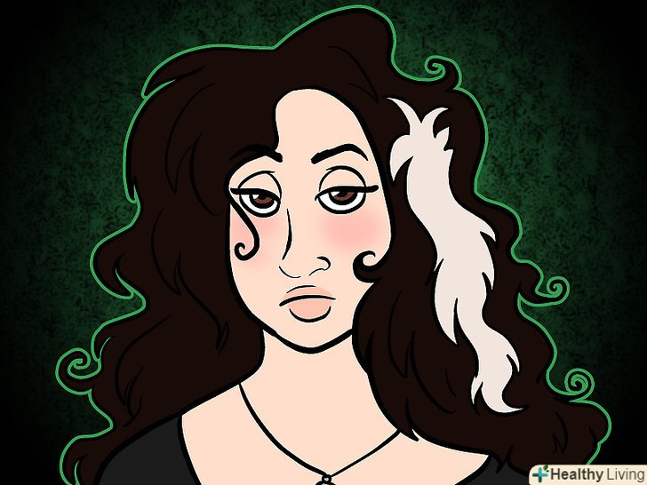 Стосовно вашого волосся: якщо ви використовуєте перуку, купуйте чорний перуку в стилі Шер або Снукі (може бути накрученим, але необов'язково). Потім, візьміть білу фарбу, стару Чорну туш або паличку для макіяжу, Зробіть собі пару твердих сивих пасом, або половину волосся/Перуки білого волосся. Якщо у вас і так довгі, чорне волосся, накрутіть їх перед сном, зробіть безлад на голові, вспушіть волосся. Відокремте локони. Купуйте білу / срібну фарбу для волосся, розбризкуйте її по всій голові (або по декількох пасмам). Ви можете заплести волосся на ніч, потім трохи вспушіть їх. Це те, що я робила.