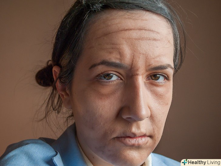 Створіть зморшки. Подивіться в дзеркало і зморщитеся. Наморщіть лоб. Зверніть увагу на свої природні зморшки. Відтіните їх хайлайтером і тінню.Темно-коричневим олівцем або маленьким пензликом прорисуйте тонку лінію прямо над кожною зморшкою.