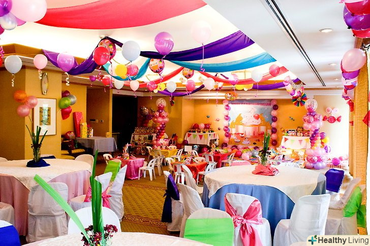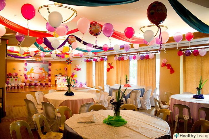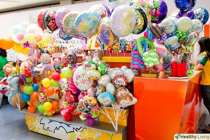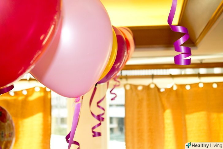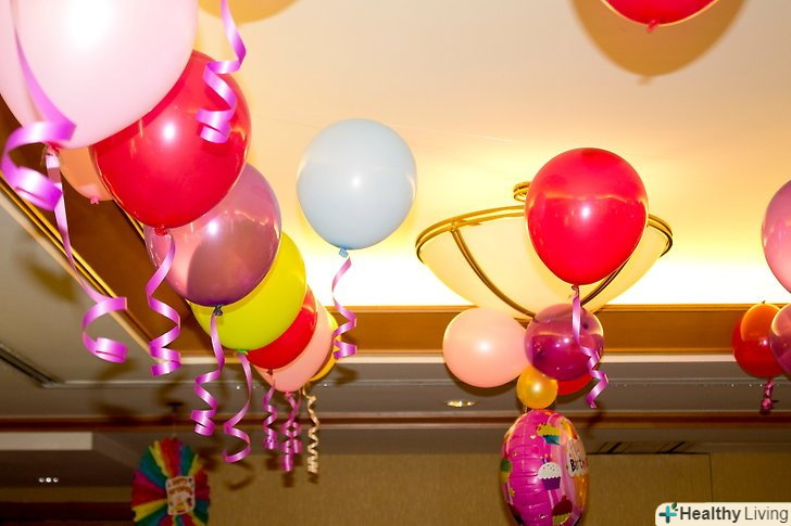 Виберіть між гелієвими або звичайними кульками. Ви без проблем можете повністю прикрасити приміщення звичайними кулями. Це швидко, дешево і дуже легко. Але для відчуття повного достатку можливостей куль вам знадобляться Гелієві. Або і ті, і інші!- Кульки можуть надути в магазині з дрібницями для вечірок або можна купити домашній гелієвий набір. Якщо у вас тонни куль, вам захочеться скористатися останнім варіантом.
