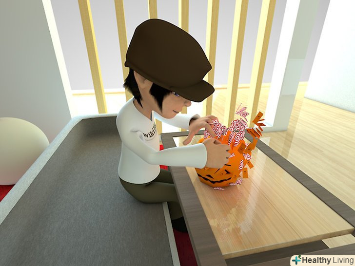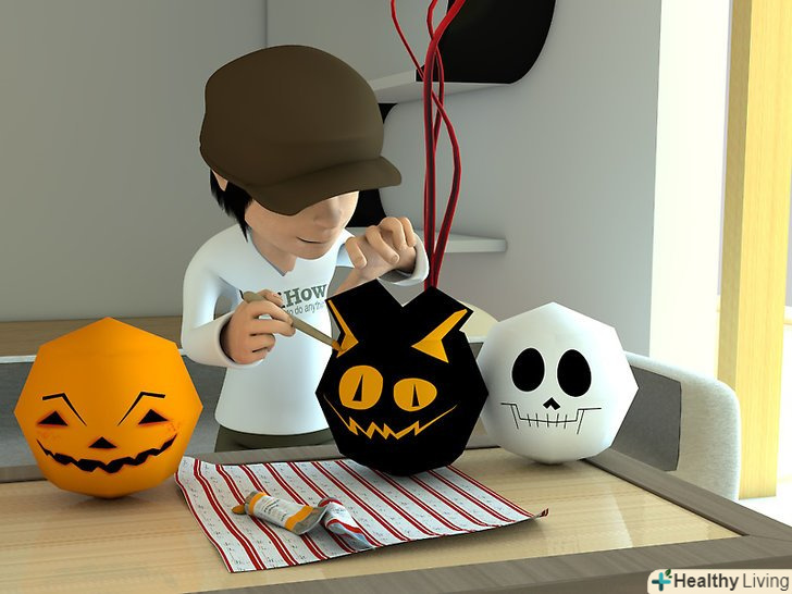 Приклейте паперову аплікацію. Візьміть картон, виріжте з нього картинки або фігурки для аплікації, яку потрібно приклеїти канцелярським клеєм.- До того ж можна роздрукувати готові хелловінські картинки або осінні малюнки, взяті з Інтернету.