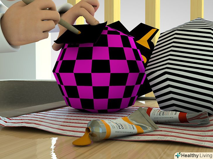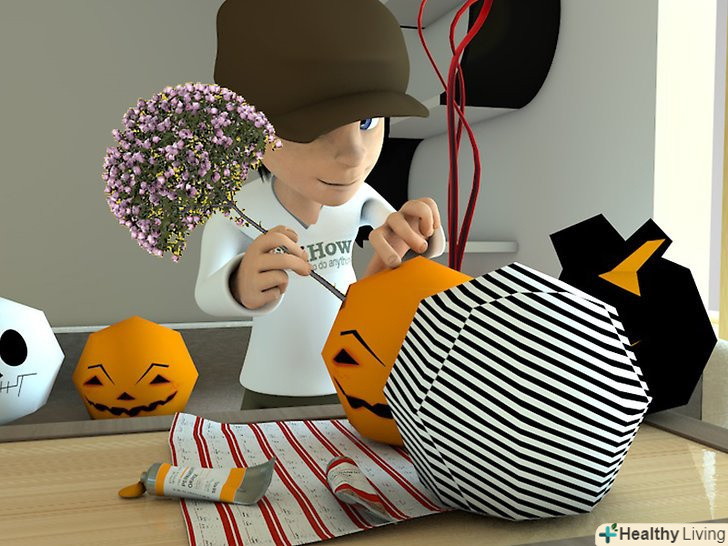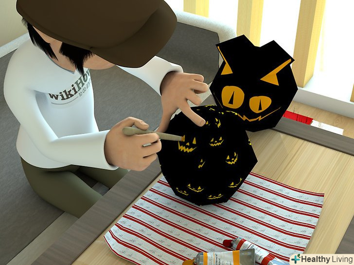 Розумно підійдіть до вибору колориту. можна взяти чорну фарбу, кольору осінньої тематики або навіть металік.- Якщо ви виберете чорну фарбу, то отримаєте традиційний чорно-помаранчевий колорит, відповідний тематиці Хеллоуїна.