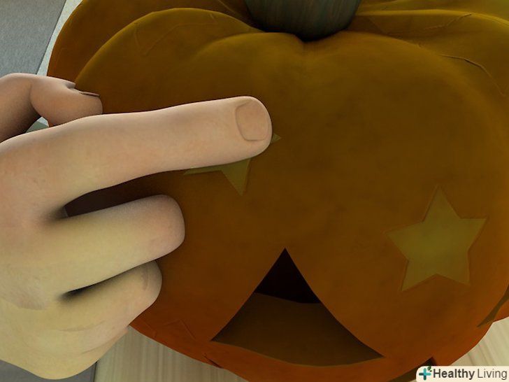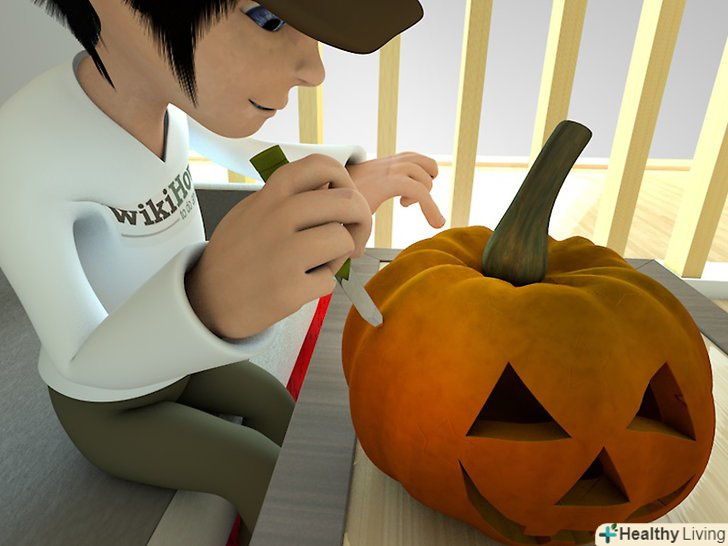 Вигравіруйте контури, використовуючи ніж без зубчиків для очищення овочів. Ідіть кінчиком ножа уздовж ліній, накреслених олівцем. Встроміть ніж досить глибоко, щоб проткнути шкірку, але не занадто, щоб не зачепити м'якоть плоду.