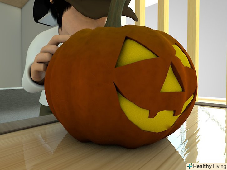Покрийте відкриту м'якоть вазеліном. щоб гарбуз не згнила швидко, нанесіть тонкий шар вазеліну або канцелярського герметика на відкриту м'якоть. Він буде служити бар'єром проти суворих погодних умов.