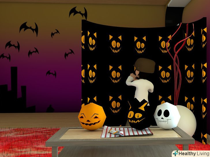 - Намалюйте привидів, кажанів, скелети, відьом або чорних котів, щоб відтворити сцену Хеллоуїна.