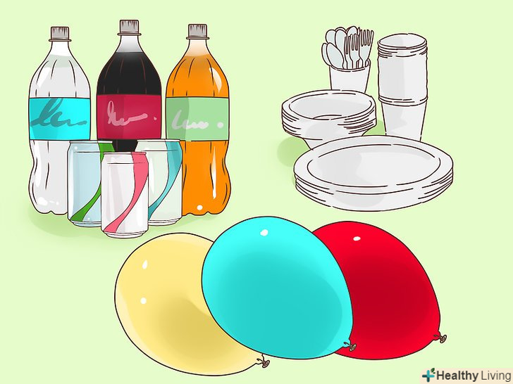 Купуйте приладдя. розішліть запрошення і займіться покупкою всіх необхідних для свята приладдя. Зазвичай все залежить від тематики вечора, закладу і багатьох інших факторів.- Для будинку зазвичай потрібно купувати їжу, напої, одноразовий посуд і прикраси.