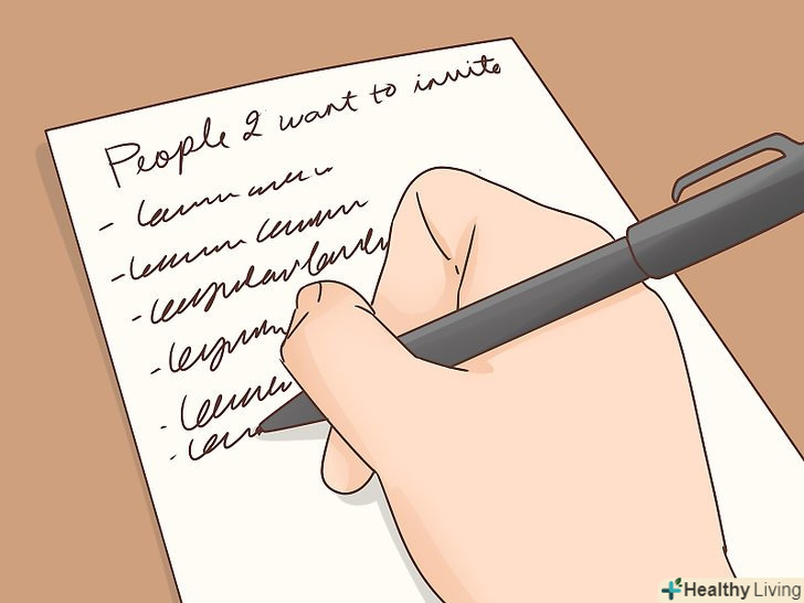 Визначте кількість гостей. коли дізнаєтеся бюджет, переходите до попереднього списку гостей. По суті, кількість гостей укупі з бюджетом визначать характер святкування дня народження. Як скласти список гостей:- Складіть список обов'язкових гостей. Тут будуть найкращі друзі і найближчі люди. Всі, з ким ви бачитеся щотижня.