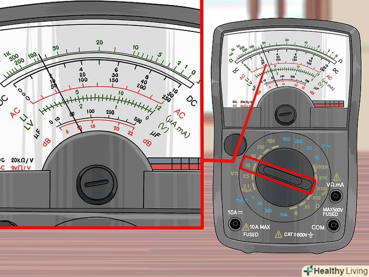 Прочитайте показники вольтметра.цифрові вольтметри чітко показують вольтаж на електронному екрані. Аналогові вольтметри трохи складніші в роботі, але не надто складні, як тільки ви розберетеся з показаннями. Продовжуйте читання для отримання інструкцій.