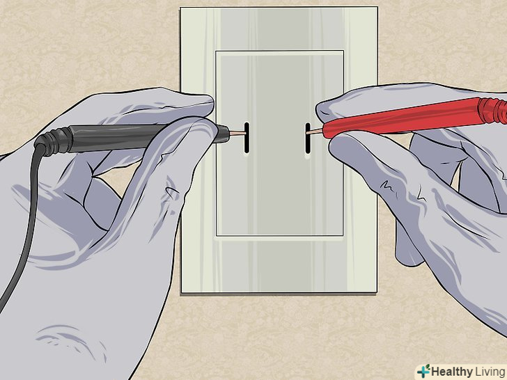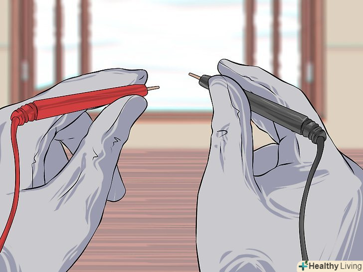 Тримайте Щупи безпечно.не торкайтеся до металевих щупів, коли підключаєте їх до схеми. Якщо ізоляція виглядає потертою або зношеною, надіньте ізоляційні рукавички або придбайте заміну деталей.- Два металевих щупа ніколи не повинні стикатися під час вимірювання напруги, інакше може виникнути іскра і замикання.