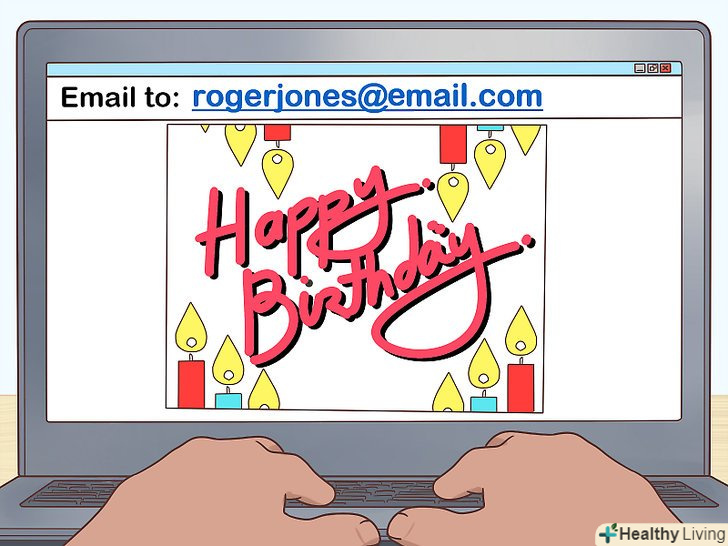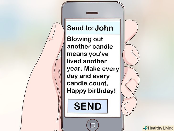 Пошліть добре продумане повідомлення по електронній пошті або через СМС. не пишіть просто» з днем Народження " і все — підпишіть ще кілька рядків, нехай повідомлення буде більш душевним. Можна також вкласти фото, на якому ви з іменинником, щоб воскресити Ваші спільні спогади. [11]- Оскільки СМС можуть бути більш знеособленими, ніж обмін листами або особисте спілкування між людьми, приділіть увагу вашому повідомленню і обміркуйте, що слід написати.