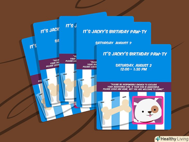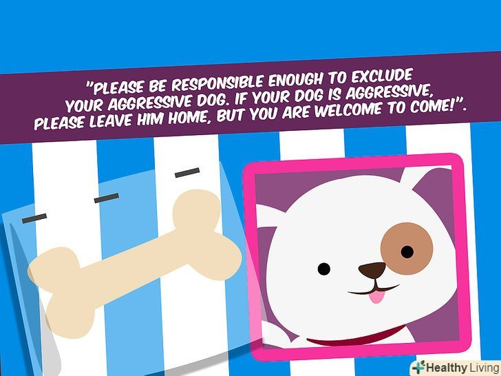 Напишіть жирним шрифтом на запрошенні "будь ласка, будьте досить відповідальні, не приводьте агресивних собак. Якщо ваша собака агресивна, будь ласка, залиште її вдома, але ви можете прийти!". Це важливо, якщо ви запрошуєте друга, який має собаку, але ви її ще не бачили.