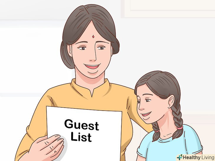 Підбирайте гостей з розумом. це один з небагатьох моментів в житті вашої дитини, коли гостями будуть дуже різні люди різного віку. Тут будуть друзі, сусіди, члени сім'ї і діти такого ж віку, як і ваша дитина, хоча і необов'язково однолітки. Подумайте, скількох людей вам буде не накладно прийняти, будучи господинею вечірки. Зазвичай, в середньому, це людина 10.- Чим більше людей різного віку ви запросите, тим більше проблем з організацією у вас буде. Якщо будуть маленькі діти, їх доведеться розважати. Вам також доведеться подбати про" дорослу їжу "і"дитячу їжу". Подумайте про те, що потрібно кожному гостю, складаючи список.