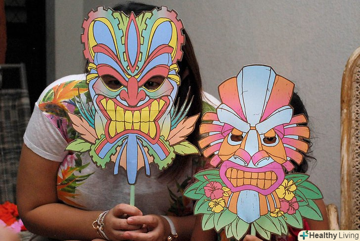 - Зробіть маски Тікі. Роздрукуйте контури масок Тікі або купіть чисті маски в магазині. Дайте дітям прикрасити власні Тики маски, щоб їх носити.