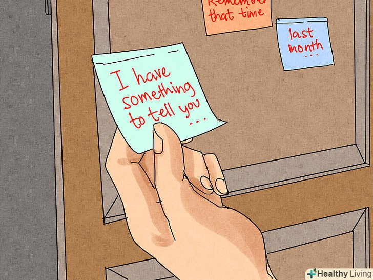 Зробіть банку з сюрпризом. якщо ви переживаєте через те, що забули про День Народження, і хочете загладити свою провину, це говорить про те, що людина вам не байдужий і що у вас особливі відносини. Банку з сюрпризом допоможе вам висловити свої почуття. Вам буде потрібно банку з кришкою, що загвинчується, ручка і папір. Можете не обмежуватися тільки цим, проте значення матиме тільки те, що ви напишете. На кожному аркуші паперу, який ви опустите в банку, напишіть про спогад, пов'язаний з цією людиною: щось, що Вас пов'язує; щось, що він сказав або зробив; то, як він виглядав в певний день; те, як ви ставилися до людини в минулому, і те, як ви ставитеся до нього зараз.- Покладіть один великий листок або картку і напишіть на ній вибачення.
