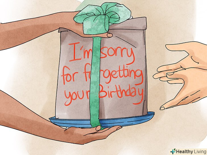 Знайте, як слід вибачатися. Якщо ви образили когось (в тому числі забули про День Народження), вам потрібно буде пояснити, що ви розумієте, що вчинили негарно, і що вам не все одно, що відчуває людина. Щоб вибачитися правильно, потрібно подумати про саму людину. Ким він доводиться вам? Що це за людина? Що для нього найважливіше? Відповіді на ці питання допоможуть вам знайти вірний підхід до вирішення проблеми. [1]
