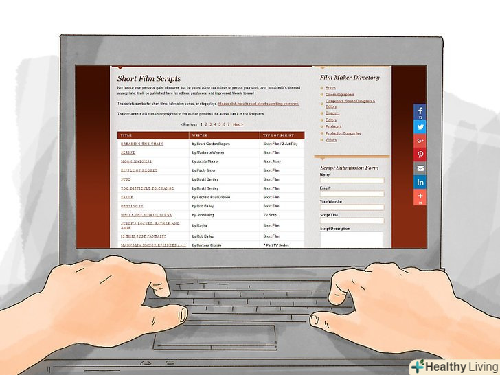 Знайдіть сценарій в Інтернеті. Немає бажання писати сценарій? Спробуйте підшукати готовий матеріал в Інтернеті. Якщо ви хочете зняти Комерційний фільм, то обов'язково зв'яжіться з автором, щоб отримати дозвіл.[3]- Деякі сценаристи можуть продати свою роботу за певну суму.