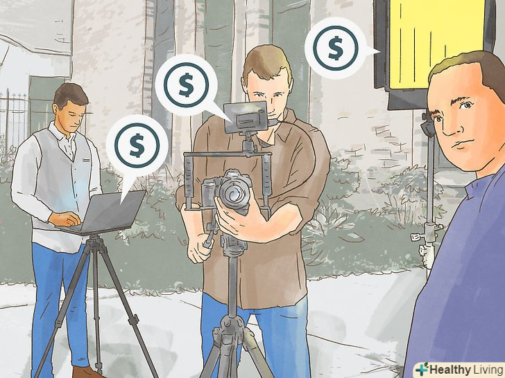 Знайдіть знімальну групу.знімальна група розділяє обов'язки з урахуванням різних аспектів зйомок-робота оператора, постановка, освітлення, монтаж і звук. Залежно від доступного бюджету можна найняти фахівців або відповідати за більшість аспектів самому.[7]- Якщо бюджет обмежений, Запропонуйте взяти участь у зйомках друзям, які цікавляться кіновиробництвом.